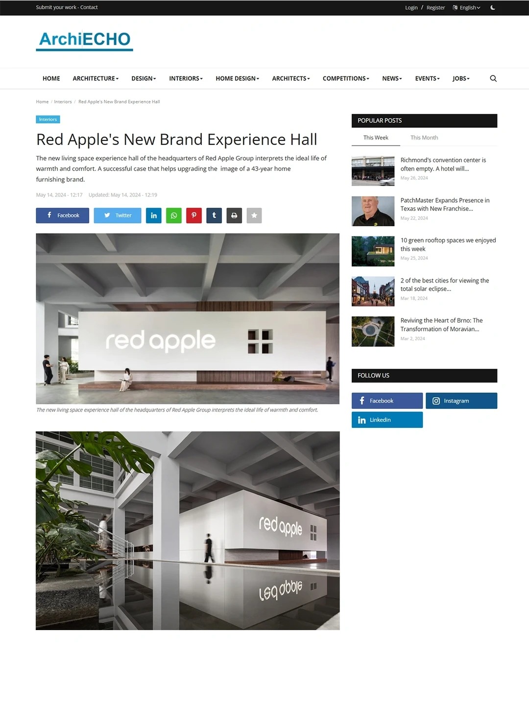 感谢《amazing architecture》、《Architecture Art Designs》、《Archilovers》、《Design Dekko》、《Archi ECHO》、《Design Trending Now》等国际主流建筑/设计媒体平台对BDSD吾界设计作品【红苹果理想生活空间体验馆】的关注与报道......