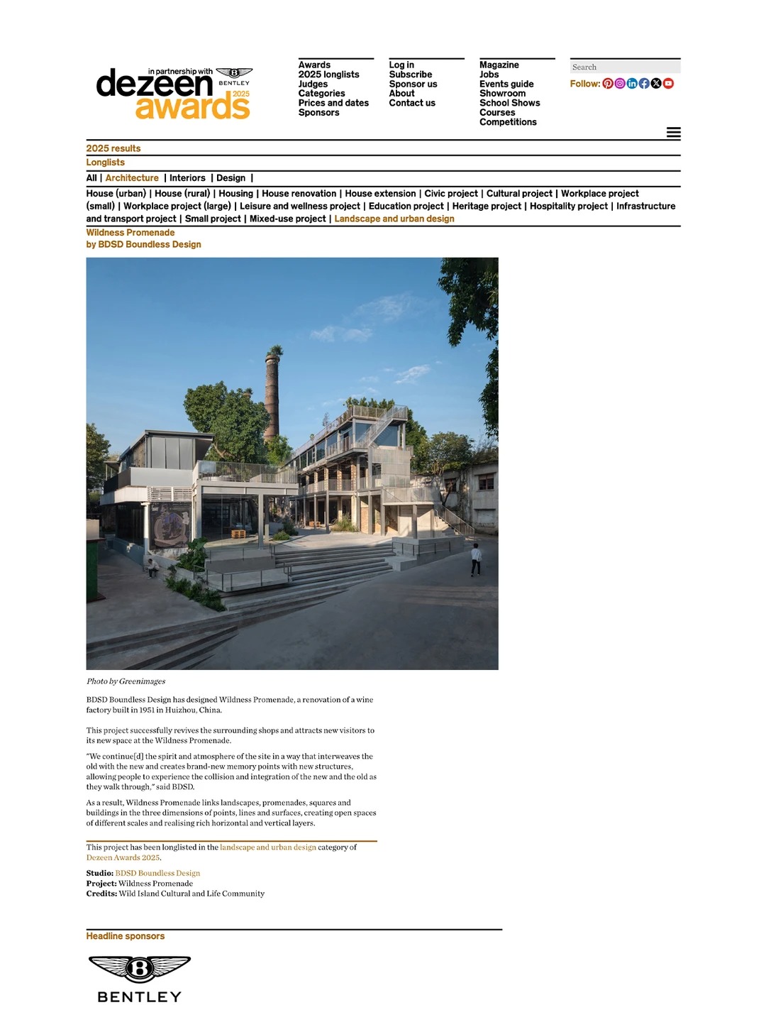 BDSD吾界设计作品「森野长廊」成功入围2025年Dezeen Awards
